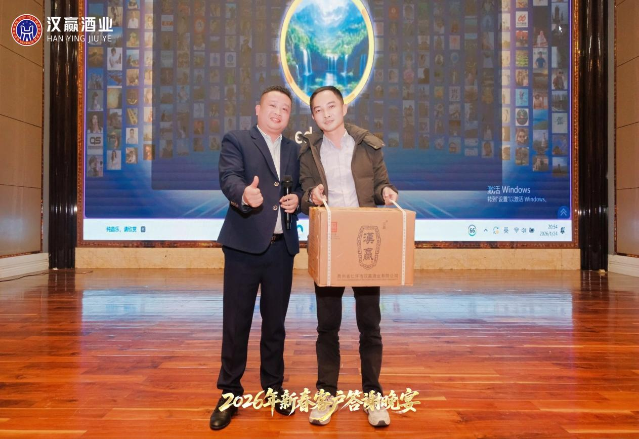 2026年1月24日晚,东莞康帝酒店国际大酒店中国厅内灯火辉煌,酒香四溢。七载风华,汉赢未来,汉赢酒业2026年新春客户答谢晚宴,在此盛大举行。58席宾朋满座,行业伙伴、各界挚友欢聚一堂,共同回顾并肩奋斗的鎏金岁月,擘画携手共赢的全新篇章。